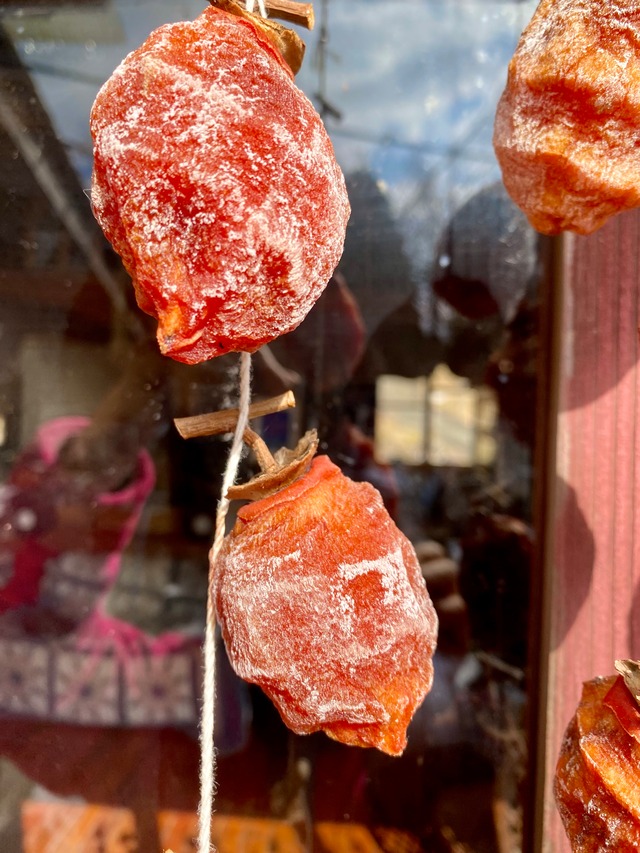 菊池のお山の自然栽培の柿でつくった干し柿です。 1月に雨が全く降らず、乾燥して固めになってしまったため、半額で販売します。 標高600メートルの山奥にある発酵農園は、氷点下10℃近くになることがあり、干し柿が凍ったり、冷たい風に当たることで、干し柿が美味しくなります。 11月末から12月上旬に、霜に当たった完熟した柿を収穫し、冬の冷たい風に当てて乾燥させて、こまめに揉むことで、アルコール発酵を促し、渋をに抜き、美味しい干し柿ができます。 今年は、柿が豊作で、大きな柿がたくさんあり、3500個、包丁で剥きました。本当にとっても美味しい干し柿ができるので、ぜひ、ご賞味頂けると嬉しいです。 昼はお日さまで、夜は薪ストーブで干しています。熱湯や焼酎に漬けたりせず、こまめに日に当てることで毎年カビることなく干し上がります。もちろん添加物等一切無添加です。 そのままで召し上がっていただくのはもちろん、刻んで白和えに入れたりクリームチーズとまぜても美味。バターをはさんで召し上がっていただくのも新鮮な美味しさです。 --------------- 名称 干し柿 原材料 柿 内容量 6個 賞味期限 1ヶ月程度 保存方法 冷蔵 (湿気が少なく風通しのいい場所で吊るしておけば常温で春まで保存することも可能です) 製造者 発酵農園 --------------