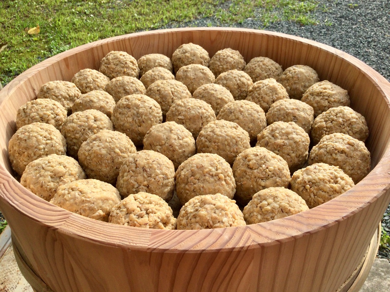 大豆は阿蘇在来の「みさを大豆」や「八天狗大豆」。大正十年に阿蘇郡高森町で井上みさをさんという農家の主婦が見つけた1本の苗木を、大事に生育し増産されたみさを大豆と、熊本県産「在来種」八天狗大豆。小粒であることや扁平で選別がしづらいという理由から生産が減少し、今では「幻の大豆」と言われています。発酵農園では9年前から自家採種・自然栽培で育てています。