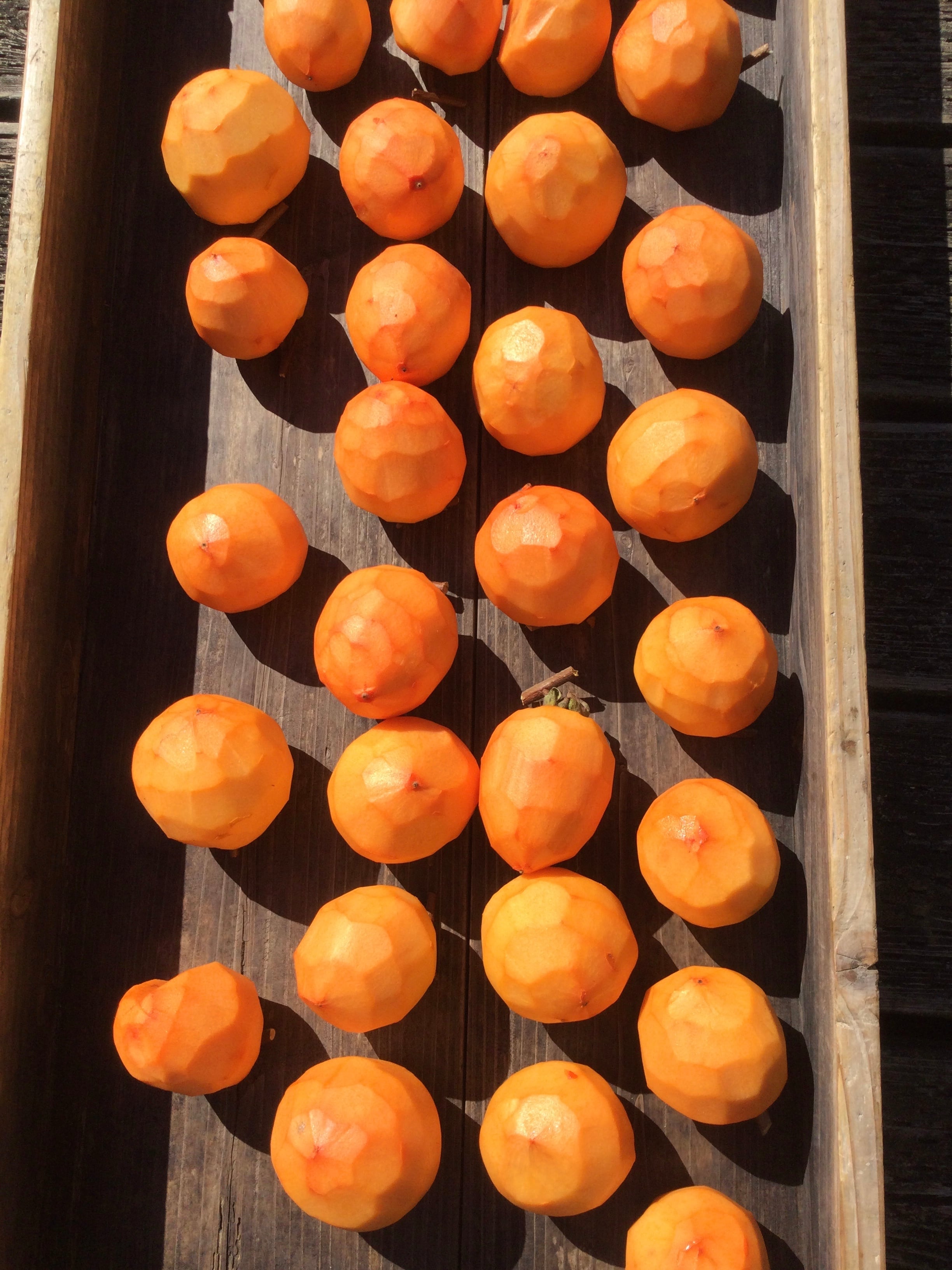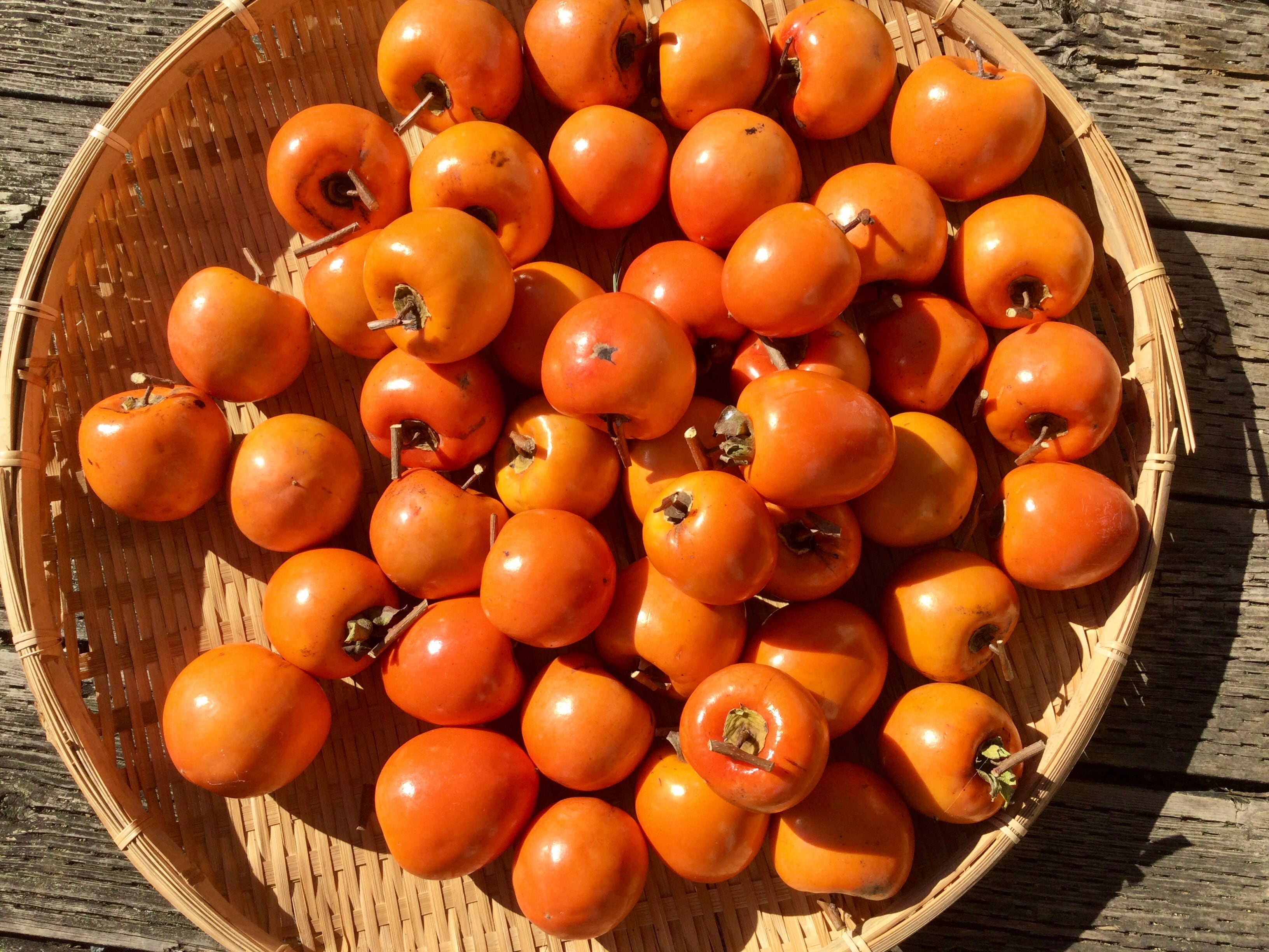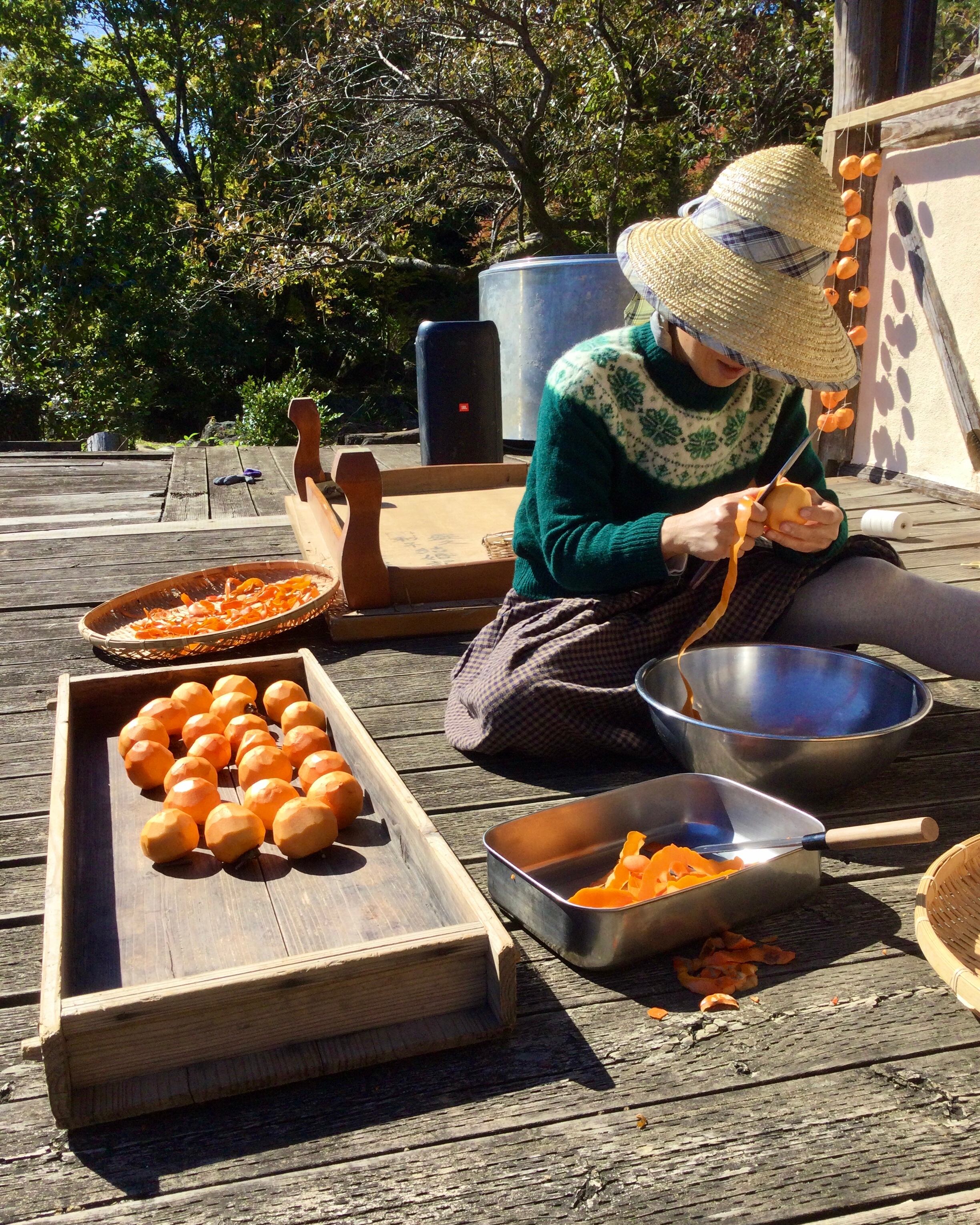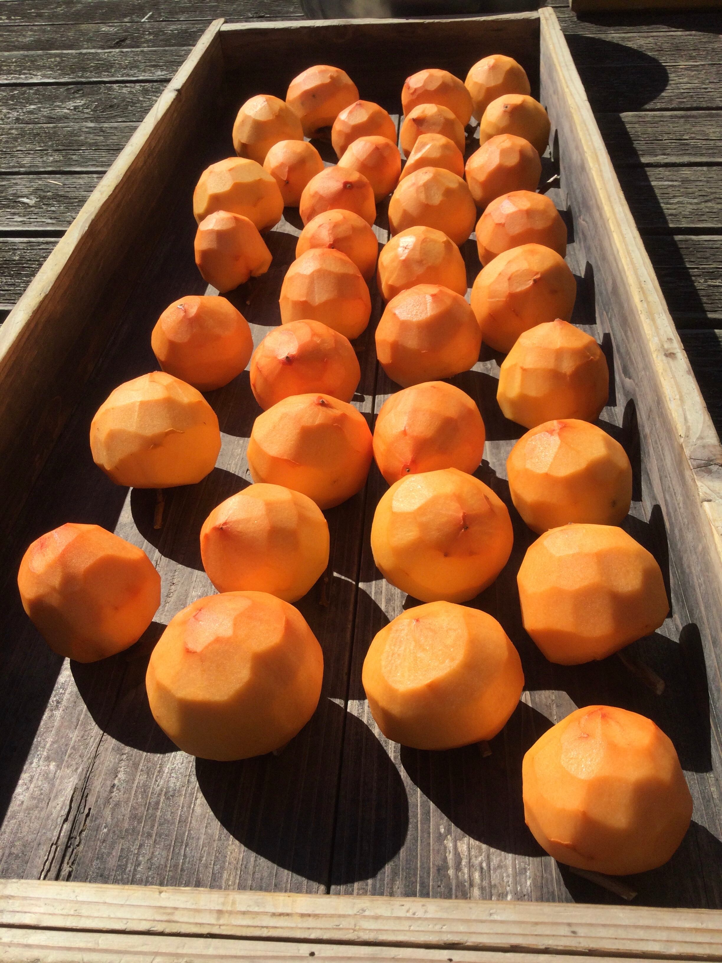 今年は、柿が豊作で、大きな柿がたくさんあり、3500個、包丁で剥きました。本当にとっても美味しい干し柿ができるので、ぜひ、ご賞味頂けると嬉しいです。
