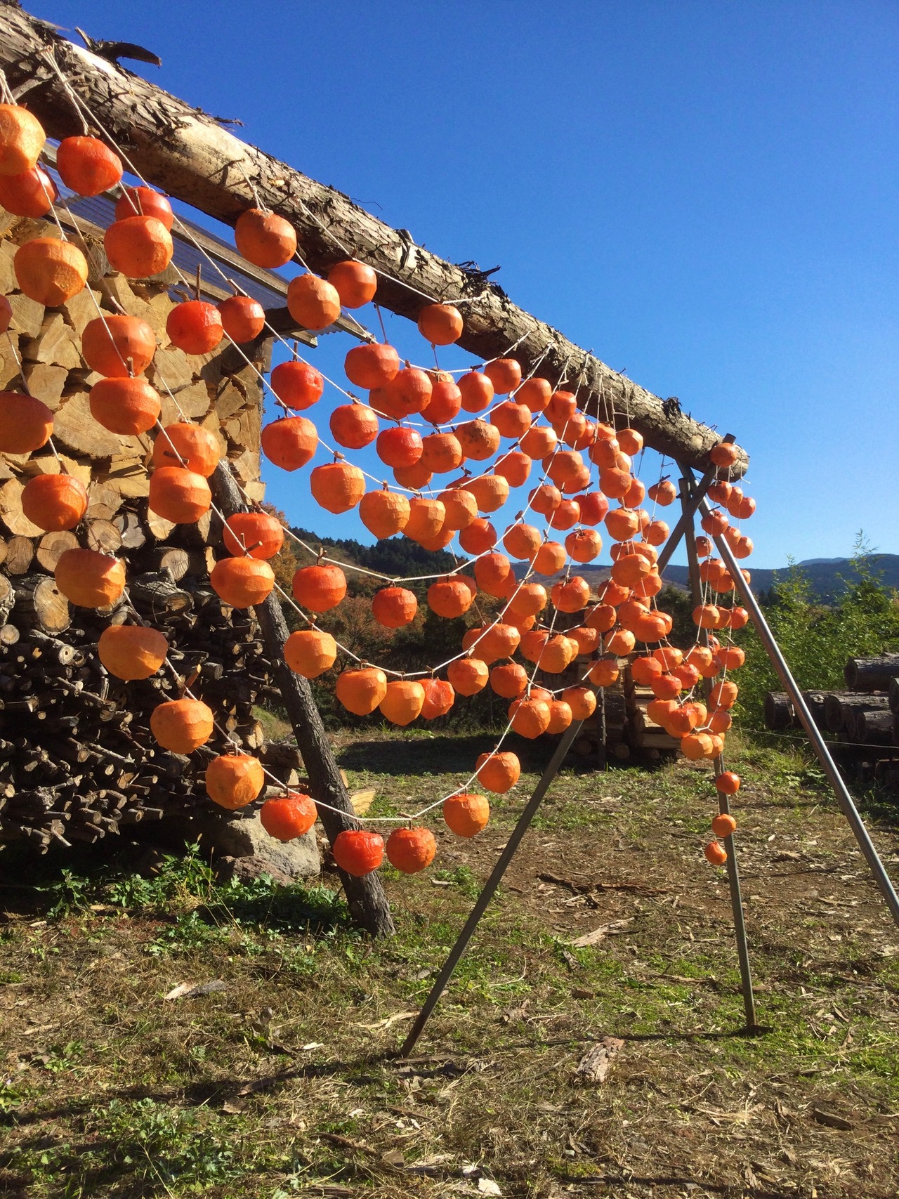 標高600メートルの山奥にある発酵農園は、氷点下10℃近くになることがあり、干し柿が凍ったり、冷たい風に当たることで、干し柿が美味しくなります。
