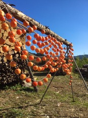 11月末から12月上旬に、霜に当たった完熟した柿を収穫し、冬の冷たい風に当てて乾燥させて、こまめに揉むことで、アルコール発酵を促し、渋をに抜き、美味しい干し柿ができます。