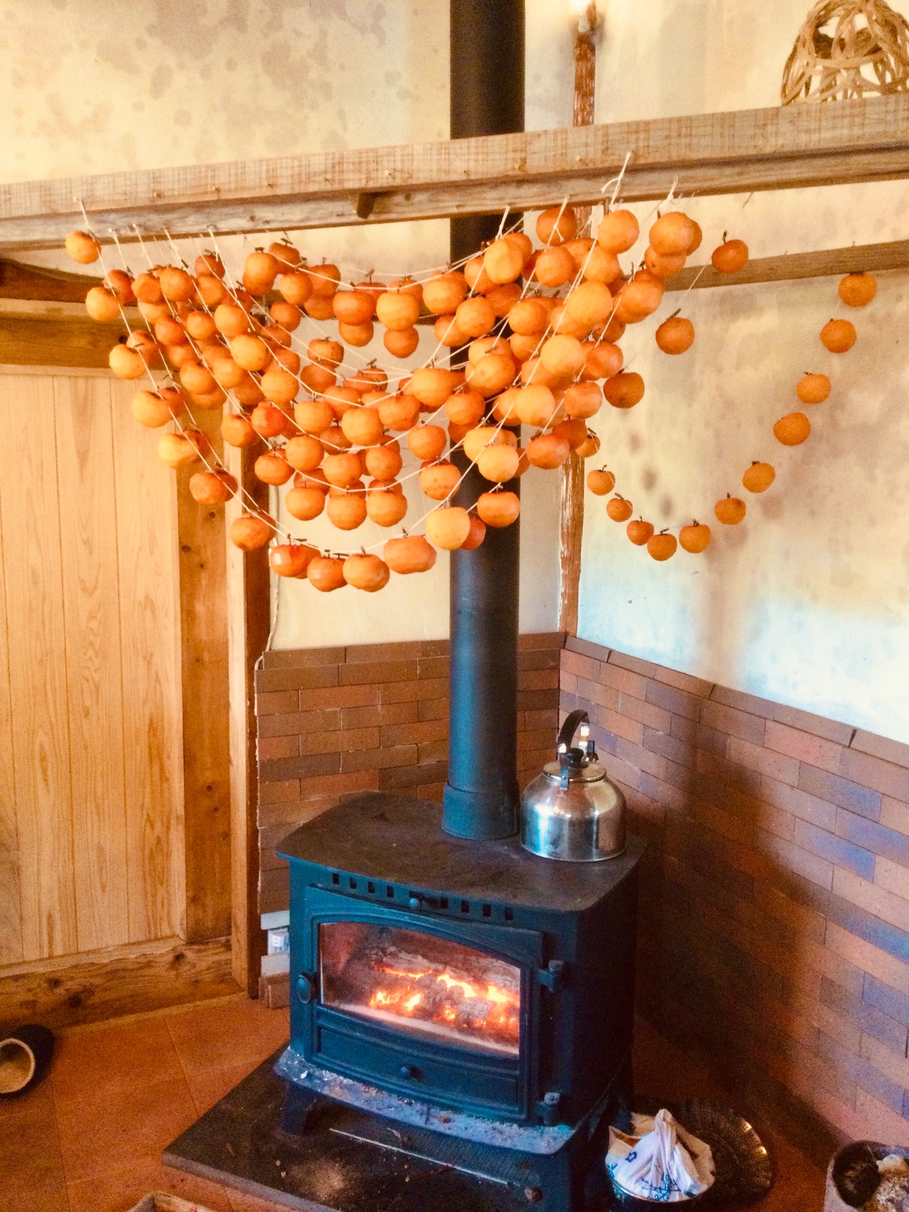 昼はお日さまで、夜は薪ストーブで干しています。熱湯や焼酎に漬けたりせず、こまめに日に当てることで毎年カビることなく干し上がります。もちろん添加物等一切無添加です。
